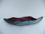 2010Een peul die openspringt en haar inhoud toont. Raku gestookt